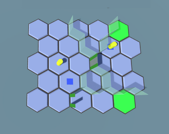 Learning of AI with a scholar project named AIBootcamp, creating an adaptative algorithm to navigate Npcs on an hexagonal environment. This project was a 3 months project, firstly solo, then duo, and at the end a group of 4 .