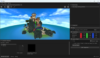 The Hierarchy panel provides a structured view of all entities in the scene, allowing for easy parenting and organization. By selecting an entity, the Inspector exposes its underlying ECS components. We can add, remove, or modify component properties - such as transform values, mesh data, or physics parameters - and see the changes reflected instantly in the engine.